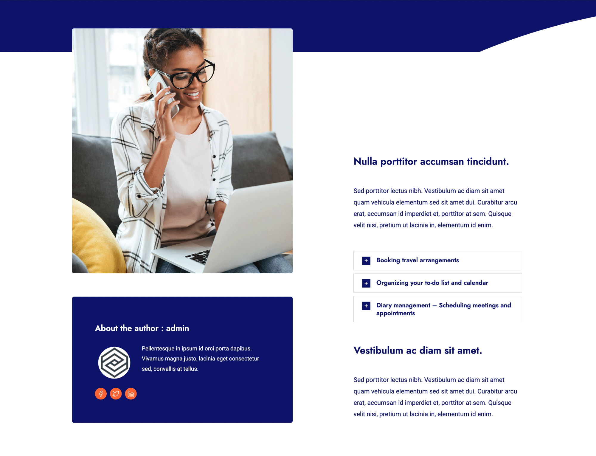 Many popular WordPress themes (such as Avada) also publish the user biography after each post, so again, complete this part of your profile to help your readers find out more about you. Below is an example of a customized post Author display for single posts on the Avada Virtual Assistant prebuilt website.