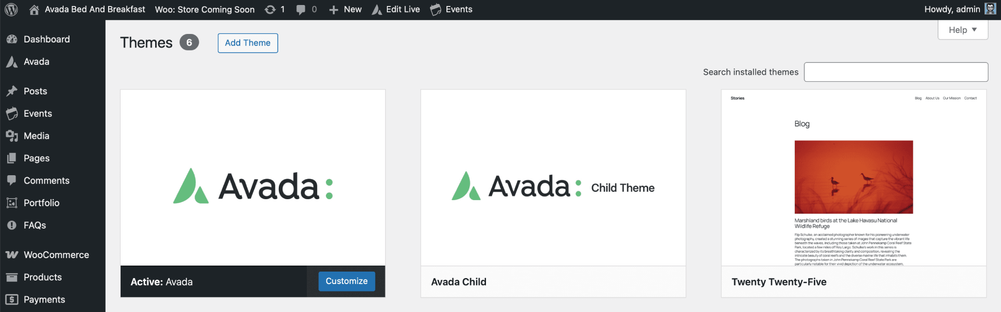 Once those two files are in place, go to your WordPress Dashboard, navigate to Appearance > Themes, and you should see your child theme listed. Activate it, and your site will continue to use Avada’s design and features, but now any custom CSS you add to the child theme will apply safely.